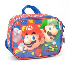 Contém: 01 un - mochila de rodinhas super mario bros moeda vermelho - luxcel. 01 un - lancheira térmica super mario e luigi vermelho - luxcel.