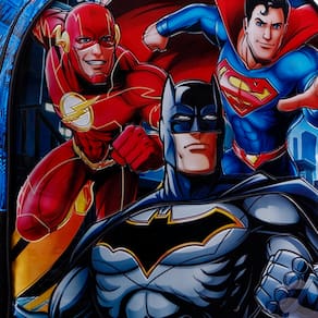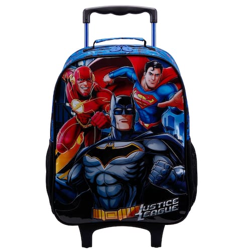 A mochila escolar infantil de rodinhas da Liga da Justiça é prática e resistente, com estampa dos heróis icônicos Possui alças ajustáveis, compartimento espaçoso e rodinhas para facilitar o transporte