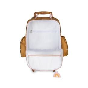Mochila de rodinhas MasterBag que conta com bolso frontal com fechamento em zíper, bolsos laterais com elástico, compartimento grande com fechamento em zíper. Alça de mão, sem alça de costas, silk frontal e etiquetas personalizadas.