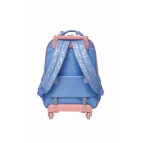 Mochila de rodinhas Pacific com alças de costas, que conta com estampa frontal, bolso frontal, telinha lateral, compartimento grande com fechamento em zíper e etiquetas personalizadas.