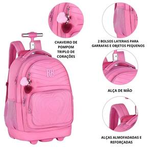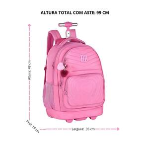 A mochila da linha Rebecca Bonbon, da Clio Style, é um item perfeito para quem busca unir estilo, funcionalidade e durabilidade. Com medidas de 35cm x 48cm x 19cm, esta mochila se destaca por seu design charmoso e prático. Equipada com rodinhas de silicone e uma haste que se eleva até 99cm, é ideal para facilitar o transporte.