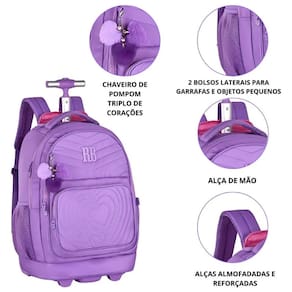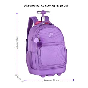 A mochila da linha Rebecca Bonbon, da Clio Style, é um item perfeito para quem busca unir estilo, funcionalidade e durabilidade. Com medidas de 35cm x 48cm x 19cm, esta mochila se destaca por seu design charmoso e prático. Equipada com rodinhas de silicone e uma haste que se eleva até 99cm, é ideal para facilitar o transporte.