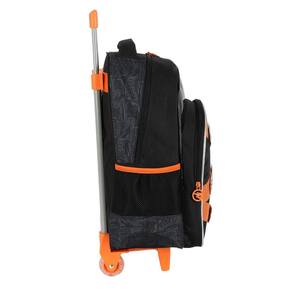 Kit mochila de rodinhas com bolsos laterias em tela com elástico, sem alça de costas, silk frontal, bolso frontal com zíper, alça de mão. Lancheira estampada com alça de costas e alça de mão, além de etiquetas personalizadas. Estojo da mesma estampa.