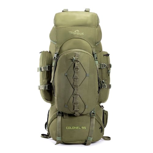 As mochilas Colonel Series são ideais para caminhadas de longa duração ou viagens com duração entre 12 e 20 dias, dependendo do tamanho que você escolher. A mochila vem com uma mochila destacável que pode ser desmontada para caminhadas ou viagens curtas. A série Colonel foi construída para durabilidade e feita para uso intenso. As bases e o revestimento de tecido duplo na parte inferior complementam e a tornam ideal para terrenos acidentados. O amortecimento macio e respirável na parte de trás oferece conforto e fluxo de ar fácil enquanto caminha por longas horas. O cinto flexível pode ser ajustado para caber abaixo da pelve para gerenciamento de carga e o mecanismo de ajuste do tronco o torna adequado para vários físicos. Equipada com um sistema de estrutura interna feito de acolchoamento de fibra e duas hastes de metal, várias tiras e cabos para segurar equipamentos adicionais e costurada usando poliéster repelente à água 900D, a mochila Colonel Series é uma mochila multiuso construída para transportar o excesso de bagagem confortavelmente. A TriPole Gears também é a fabricante desta mochila. - Pacote diurno removível – Pacote diário com capacidade de 12 litros que pode ser destacada da mochila principal para caminhadas ou passeios pela cidade para carregar pequenos itens úteis, como lanches e água. Vem com ganchos mosquetão na frente e um gancho interno com alças acolchoadas e malha traseira respirável. - Estrutura interna – a mochila é projetada para viagens e caminhadas de longa duração e está equipada com uma estrutura de fibra na parte traseira composta por uma haste de alumínio para fornecer a máxima capacidade de carga. - Capa de chuva – a mochila vem com uma capa de chuva totalmente à prova d'água que é armazenada dentro do bolso de fecho aderente na base da mochila. A capa também é útil para evitar poeira. - Abertura inferior – Compartimento de fácil acesso na parte inferior para armazenar sapatos, sacos de dormir, roupas sujas e outros itens úteis que você pode querer acessar facilmente durante a viagem. Esta seção é separada por um tecido do compartimento principal que pode ser afrouxado para transformar toda a mochila em um compartimento. - Outras características: tecido de poliéster resistente à água, ferragens duráveis e zíperes | Amortecimento macio na parte de trás oferece conforto e bom fluxo de ar durante longas horas | Vários bolsos práticos na frente, lateral e superior para armazenar itens variados.