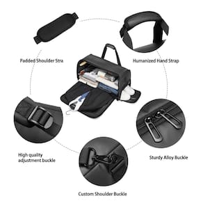 Bolsas de mão para viagem, viagens de negócios, férias com compartimento para sapatos, alça de ombro removível para homens e mulheres Quer uma bolsa para uma viagem de negócios ou viagem? Quer que seus ternos ou vestidos sejam limpos e sem rugas? Escolha-nos! -- Esta bolsa de viagem pode ajudar você a se livrar desses problemas! Tem muito espaço para guardar suas coisas e pode ser usada como um item de mão para companhias aéreas. Há alças de transporte e uma alça de ombro longa com uma almofada larga para você carregar como uma bolsa de pendurar, bolsa de ombro ou deslizar sua bolsa diretamente sobre a alça da sua mala. Viagem nunca gostou antes! Mantenha as roupas limpas, limpas e sem rugas com a bolsa de mão. Apenas tendo uma boa viagem. - Bolsa de roupa conversível 3 em 1: esta bolsa de viagem combina o recurso de uma bolsa de vestuário e uma bolsa de viagem A bolsa de roupa conversível pode ser usada como uma sacola, bolsa de ombro, bolsa casual e mochila. Com espaço estendido para manter seus ternos e vestidos limpos e sem rugas para uma viagem de negócios, pode se tornar uma bolsa de viagem para férias. A bolsa esportiva Moulyan Garment não é apenas uma bolsa de viagem noturna para fim de semana, mas também uma ótima bolsa de roupas para pendurar - Estrutura multifuncional: nossa bolsa de mão é projetada com 12 compartimentos, capacidade: 45 l. Ela maximiza a capacidade de armazenamento, armazenando tudo, desde ternos, vestidos, sapatos, gravatas e outros pertences. Esta bolsa de viagem foi projetada para manter tudo o que você precisa bem organizado em movimento. - Compartimento separado para sapatos e bolso molhado: o compartimento separado para sapatos é projetado com 2 orifícios de ar para manter a bolsa esportiva limpa e ventilada. O bolso molhado com material à prova d'água pode armazenar itens molhados ou roupas pós-treino, como roupas íntimas, roupas de banho, toalhas, etc. para manter seu compartimento principal seco. - Material e design: esta bolsa de vestuário é feita de revestimento de membrana epitelial, à prova d'água, à prova de vento e à prova de rasgos. O forro é de tecido de poliéster que nunca irá falhar. Vem com alças e fivela de alça de ombro acolchoada, ajustável e removível. - Bolsa de roupa perfeita para viagens: nossa bolsa de viagem mede 55 x 29 x 27 cm, peso: 1,4 kg. Bem feita e espaçosa é uma excelente alternativa às bolsas de vestuário de aparência tradicional, garantindo que homens e mulheres viajem com estilo!