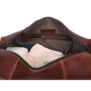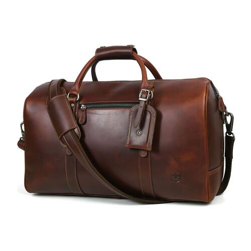 Dimensões: 20" (comprimento) x 11" (altura) x 9" (profundidade). Feita de couro de búfalo 100% genuíno, nossa mochila de viagem é bem espaçosa e tem muitos compartimentos, incluindo um compartimento separado para sapatos. Do lado de fora, tem bolsos com zíper em cada lado da bolsa e um compartimento para sapatos e, do lado de dentro, um bolso com zíper para seus gadgets, revistas ou livros, um pequeno bolso para seu telefone, dinheiro e chaves, porta-canetas e vários compartimentos para cartões. Possui pinos de metal na parte inferior para evitar escorregões e protege a parte inferior da bolsa contra arranhões. Nossa mochila tem duas alças de transporte grandes na parte superior e uma alça ajustável para lhe dar apoio durante a viagem. Esfregado com óleo vegetal para obter um acabamento suave e uma aparência natural, você receberá elogios onde quer que vá devido ao seu atraente design de pinceladas. Perfeito para a academia, uma escapadela de fim de semana e uma curta viagem de negócios. Também é ótimo para viagens aéreas como bagagem de mão, bagagem de mão ou bolsa embaixo do assento.