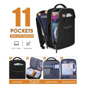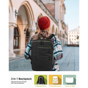 Capolo Mochila de viagem para mulheres e homens, impermeável, para laptop, aprovada por companhias aéreas, bolsa de mão para computador, negócios, viagens, serve para laptop de 43 cm (preto) - Mochila de transporte confortável: com um painel traseiro de malha respirável e alças acolchoadas projetadas para aliviar efetivamente a pressão em seus ombros e pescoço. 34 x 19 x 47 cm em conformidade com a maioria dos regulamentos das companhias aéreas para malas de mão, garantindo viagens sem complicações - 11 bolsos para armazenamento e organização: vasculhar seu item em uma mochila bagunçada pode ser enlouquecedor. Mais bolsos para melhor armazenamento, ajudando você a encontrar o que deseja mais rápido. Fecho de zíper de 180°. Compartimentos principais espaçosos com espaço para todas as suas coisas, incluindo 1 bolso de malha e 1 bolsa úmida para manter seu item limpo e organizado. 2 bolsas frontais com zíper podem ser usadas para guardar chaves e cartões. 1 compartimento para laptop com bolso organizador pode ser utilizado para guardar cadernos, canetas, fones de ouvido e outros itens pequenos - Mochila 3 em 1 com capacidade de 20L: a alça lateral ajuda você a fazer a transição perfeita de uma mochila para uma bolsa de mão, oferecendo flexibilidade para qualquer cenário de viagem. O modo mochila garante conforto e liberta suas mãos durante as explorações, enquanto a alça de bagagem permite que você a prenda sem esforço à sua mala, adicionando uma camada extra de conveniência. Melhore sua experiência de viagem com uma bolsa que se adapta às suas necessidades, oferecendo estilo, funcionalidade e a solução perfeita de viagem tudo em um só - 4 fivelas laterais ajustáveis de compressão e zíper duplo: utilize 4 fivelas laterais ajustáveis para proteger firmemente seus pertences, reduzir deslocamentos e eliminar suas preocupações com aberturas indesejadas. As alças laterais adaptáveis mantêm o perfil elegante da bolsa. Abrace a conveniência de um zíper duplo e um design de fecho de 180° para acesso sem esforço. Invista em um companheiro de viagem que antecipa suas necessidades, proporcionando conforto e um toque de sofisticação às suas aventuras - Materiais resistentes à água: nossas mochilas são feitas de poliéster resistente à água de nova geração para proteger seus itens de gotas de chuva, suor e umidade