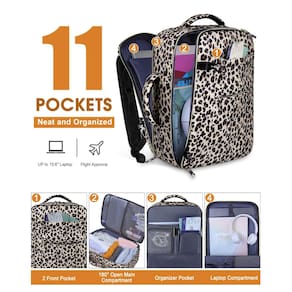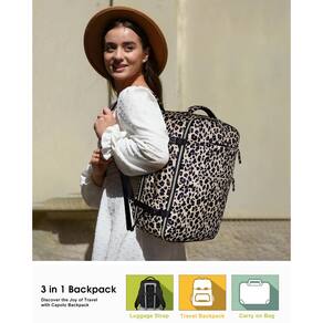 Capolo Mochila de viagem para mulheres, homens, impermeável, para laptop, aprovada por companhias aéreas, bolsa de mão, bolsa de computador para negócios, trabalho, viagem, serve para laptop de 15,6 polegadas (leopardo) - Mochila confortável para itens pessoais: com um painel traseiro de malha respirável e alças acolchoadas projetadas para aliviar efetivamente a pressão em seus ombros e pescoço. 29 x 18 x 42 cm em conformidade com a maioria dos regulamentos das companhias aéreas para bolsas de itens pessoais, garantindo viagens sem complicações - 11 bolsos para armazenamento e organização: vasculhar seu item em uma mochila bagunçada pode ser enlouquecedor. Mais bolsos para melhor armazenamento, ajudando você a encontrar o que deseja mais rápido. Fecho de zíper de 180°. Compartimentos principais espaçosos com espaço para todas as suas coisas, incluindo 1 bolso de malha e 1 bolsa úmida para manter seu item limpo e organizado. 2 bolsas frontais com zíper podem ser usadas para guardar chaves e cartões. 1 compartimento para laptop com bolso organizador pode ser utilizado para guardar cadernos, canetas, fones de ouvido e outros itens pequenos - Mochila 3 em 1 com capacidade de 20L: a alça lateral ajuda você a fazer a transição perfeita de uma mochila para uma bolsa de mão, oferecendo flexibilidade para qualquer cenário de viagem. O modo mochila garante conforto e liberta suas mãos durante as explorações, enquanto a alça de bagagem permite que você a prenda sem esforço à sua mala, adicionando uma camada extra de conveniência. Melhore sua experiência de viagem com uma bolsa que se adapta às suas necessidades, oferecendo estilo, funcionalidade e a solução perfeita de viagem tudo em um só - 4 fivelas laterais ajustáveis de compressão e zíper duplo: utilize 4 fivelas laterais ajustáveis para proteger firmemente seus pertences, reduzir deslocamentos e eliminar suas preocupações com aberturas indesejadas. As alças laterais adaptáveis mantêm o perfil elegante da bolsa. Abrace a conveniência de um zíper duplo e um design de fecho de 180° para acesso sem esforço. Invista em um companheiro de viagem que antecipa suas necessidades, proporcionando conforto e um toque de sofisticação às suas aventuras - Materiais resistentes à água: nossas mochilas são feitas de poliéster resistente à água de nova geração para proteger seus itens de gotas de chuva, suor e umidade