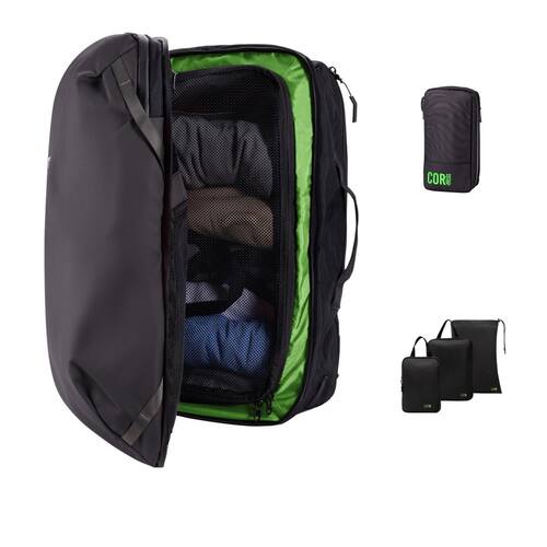 Obtenha tudo o que você precisa em um pacote incrível! A melhor mochila de viagem de viagem, além de nossa nova bolsa de higiene pessoal compacta resistente à água, kit dopp e nossos novos cubos de compressão que se encaixam perfeitamente dentro da mochila estilo bagagem de mão Island Hopper. O Island Hopper é perfeito para aquelas escapadelas de fim de semana. Vai acampar rápido ou viagem? O Island Hopper tem o espaço que você precisa para viajar com pouca bagagem e deixar sua bagagem volumosa em casa! O Island Hopper é perfeito para viagens de fim de semana, viagens de negócios, deslocamento de bicicleta e é construído para lidar com qualquer elemento que você jogar. Este será o único pacote que você precisa a partir de agora - Novo para 2024! O novo pacote de mochila de viagem 40L agora com zíperes YKK e um cinto acolchoado para suporte. A melhor mochila de transporte para viajantes sérios. Para quem gosta de viajar leve, o Island Hopper é para você. A mochila se desdobra como uma mala para que você possa carregar todas as suas roupas, sapatos extras, artigos de higiene, eletrônicos e cargas, tudo enquanto se mantém organizado. A mochila perfeita para sua bagagem de mão ou para uma viagem de fim de semana. - Tudo o que você precisa para tornar as viagens fáceis e sem dor: o conjunto inclui a mochila de viagem estilo Bagagem Island Hopper, nossa nova bolsa compacta e resistente à água, além de nosso novo conjunto de organizadores de compressão, além de um saco de lavanderia adicional que funciona como uma bolsa de sapatos. - Mochila de viagem The Island Hopper: construída para conforto premium: alças largas e acolchoadas e ergonômicas para distribuir uniformemente cargas pesadas, com alça de peito ajustável. Durável: construído resistente com costura dupla e garantia vitalícia - Bolsa de higiene compacta: projetada para o viajante sério, a bolsa de higiene COR Surf é um kit de higiene leve e compacto que manterá todos os seus itens essenciais organizados. Feita com um exterior resistente à água com zíperes impermeáveis premium, você pode manter sua bolsa de higiene COR Surf em qualquer ambiente de banheiro molhado. - Cubos de embalagem de compressão: os cubos de compressão ajudam você a embalar suas roupas para as próximas viagens, comprimindo o ar delas. Estes não são seus sacos de vácuo típicos - estes cubos expansíveis usam um sistema de dois zíperes para ajudar a eliminar o volume extra ao embalar sua bagagem. Os zíperes literalmente comprimem suas roupas e eliminam o desperdício de espaço. - As bolsas de embalagem de compressão são essenciais para viagens - especialmente úteis como mochila, bagagem e organizador de malas. Mantenha roupas diferentes em cubos de compressão separados e esteja sempre pronto para o que vem a seguir! Guarde facilmente roupas como capas de chuva/jaquetas mais pesadas que não são usadas com tanta frequência. Use nossa bolsa de lavanderia para guardar roupas sujas e manter sua mala ou mochila organizada. - A mochila Island Hopper tem: dois bolsos ocultos no painel traseiro para documentos de viagem, dinheiro, cartões de crédito ou o que você não quiser que os carteiros encontrem. Um zíper está escondido sob a alça de bagagem de mão e não é visível aos olhos.
