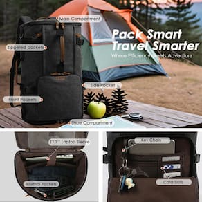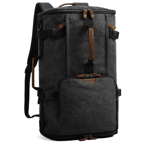 A mochila de viagem G-FAVOR é feita de lona, couro e acessórios de metal. É a melhor parceira para os amantes retrô. Você vai adorar quando levá-la quando viajar. - ? Mochila de viagem 3 em 1 conversível. Esta mochila de mão projetada como uma mochila conversível (mochila, bolsa transversal, mochila), esta mochila de viagem pode usar vários métodos de transporte diferentes para dar a você uma experiência diferente. - ? Muito espaço de armazenamento e bolsos. A mochila de viagem tem um compartimento principal e um compartimento para laptop de 17,3 polegadas, tem bolsos internos independentes, nos quais pequenos itens podem ser facilmente armazenados. E há um compartimento para sapatos, torna seus itens organizados e mais fáceis de encontrar. - Grande capacidade e aprovação de voo. O tamanho desta mochila de viagem grande é 51 x 32 x 20 cm (20,1 x 12,5 x 7,9 polegadas), mochila de viagem de até 40 L. Design exclusivo e moderno, bem feita para viagens de fim de semana ou viagens de avião internacionais, e a mochila de mão atende aos requisitos de tamanho máximo, pode ser colocada sob o assento ou compartimento suspenso, mochila de viagem aprovada em voo. - ? Materiais resistentes e sólidos. Feita de lona, alça de couro e forro de poliéster, zíperes e fivelas de metal. Garante uso duradouro. O design confortável oferece o máximo suporte para as costas. Alças de ombro respiráveis e ajustáveis aliviam o desconforto do ombro por um longo tempo. - ?Multifuncional. Esta mochila de lona pode ser usada como mochila de viagem, bolsa de trabalho, mochila de dia, bolsa noturna, bolsa de fim de semana, bolsa de viagem. Mochila para viagens, caminhadas, atividades ao ar livre e acampamento.