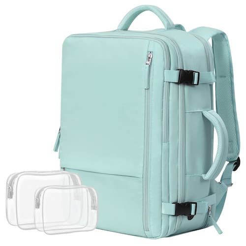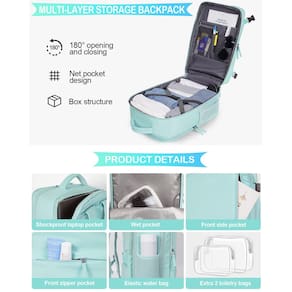 Especificações: Tecido: poliéster de qualidade resistente à água. Ocasiões: viagem/negócios/faculdade/trabalho/caminhadas/presentes. - Projetada para viagens: - Tamanho aprovado pela companhia aérea: 44 x 31 x 21 cm. A mochila aprovada pela Getravel atende aos requisitos de portabilidade da maioria das companhias aéreas. Pode ser colocada no compartimento superior ou embaixo do assento. - Design expansível: a mochila tem um design expansível que pode ser expandido de 35 L para 40 L de espaço de armazenamento para mudar como você desejar, que é muito espaçosa e pode facilmente armazenar 3-7 dias de equipamento de viagem. - Sacos de armazenamento separados: os 2 sacos de lavagem podem manter seus itens pessoais limpos e arrumados, reduzir problemas de armazenamento e facilitar a viagem. Vários compartimentos e bolsos. 1. Compartimento principal: 35L-40L de espaço de armazenamento da mochila para trocar como desejar, a capacidade máxima pode armazenar 3-7 dias de roupas. 2. Compartimento para laptop: um bolso acolchoado para laptop que comporta um laptop de até 17 polegadas. 3. Bolso lateral frontal: para livro, caneta, carteira, bolsa, óculos ou outros itens. 4. Bolso frontal com zíper: para passaporte, chaves, fone de ouvido ou outros itens pequenos. 5. Bolsa de separação úmida e seca: a bolsa úmida de comprimento total é feita de material impermeável de alta densidade para isolar itens úmidos, como toalhas ou roupas molhadas, etc. 6. Bolso lateral: bolso lateral para guarda-chuva, garrafa de água, etc. Dicas quentes: 1. Não exponha a chuva forte por muito tempo sem qualquer capa de chuva. 2. Feche o zíper completamente e coloque o puxador de zíper na parte inferior, para evitar a abertura do zíper devido à forte agitação ao caminhar. Observação: este item não é destinado a ser utilizado por crianças menores de 3 anos. - Tamanho aprovado para voo: a mochila Getravel atende aos requisitos de portabilidade da maioria das companhias aéreas. As mochilas abrem facilmente de 0 a 180 graus e cabem sob o assento do avião ou no teto e ajudam você a passar pela segurança rapidamente - Mochila expansível de grande capacidade: nossa mochila pode ser expandida de 35 L para 40 L. Design de armazenamento com vários bolsos e zonas, que é muito espaçosa e pode armazenar facilmente de 3 a 7 dias de equipamento de viagem (tamanho: 44 x 31 x 21 cm; peso: 1 kg) - Design de orifício de carregamento USB: esta mochila grande com um design de orifício de carregamento USB facilita carregar seu telefone ou outros dispositivos enquanto viaja (o carregador portátil e o cabo não estão incluídos) - Com capa para carrinho e bolso antirroubo: esta mochila para laptop de 17 polegadas vem com uma alça de bagagem que pode prender a mochila à mala. Um bolso oculto com zíper antirroubo pode armazenar objetos de valor, como telefones celulares ou cartões para evitar roubo - 2 bolsas de higiene adicionais: esta bolsa de viagem vem com 2 bolsas de higiene. O design de cubo transparente à prova d'água oferece uma visão geral clara dos produtos de higiene pessoal, mantenha seus pertences limpos e organizados - Com bolsa acolchoada para laptop que comporta um laptop de até 17 polegadas. Suporte acolchoado de espuma e alça superior para um longo tempo de transporte. Esta mochila é perfeita para viagens de negócios, viagens, faculdade, uso diário no trabalho, etc