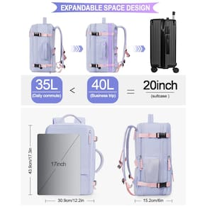Especificações: Tecido: poliéster de qualidade resistente à água. Ocasiões: viagem/negócios/faculdade/trabalho/caminhadas/presentes. - Projetada para viagens: - Tamanho aprovado pela companhia aérea: 44 x 31 x 21 cm. A mochila aprovada pela Getravel atende aos requisitos de portabilidade da maioria das companhias aéreas. Pode ser colocada no compartimento superior ou embaixo do assento. - Design expansível: a mochila tem um design expansível que pode ser expandido de 35 L para 40 L de espaço de armazenamento para mudar como você desejar, que é muito espaçosa e pode facilmente armazenar 3-7 dias de equipamento de viagem. - Sacos de armazenamento separados: os 2 sacos de lavagem podem manter seus itens pessoais limpos e arrumados, reduzir problemas de armazenamento e facilitar a viagem. Vários compartimentos e bolsos. 1. Compartimento principal: 35L-40L de espaço de armazenamento da mochila para trocar como desejar, a capacidade máxima pode armazenar 3-7 dias de roupas. 2. Compartimento para laptop: um bolso acolchoado para laptop que comporta um laptop de até 17 polegadas. 3. Bolso lateral frontal: para livro, caneta, carteira, bolsa, óculos ou outros itens. 4. Bolso frontal com zíper: para passaporte, chaves, fone de ouvido ou outros itens pequenos. 5. Bolsa de separação úmida e seca: a bolsa úmida de comprimento total é feita de material impermeável de alta densidade para isolar itens úmidos, como toalhas ou roupas molhadas, etc. 6. Bolso lateral: bolso lateral para guarda-chuva, garrafa de água, etc. Dicas quentes: 1. Não exponha a chuva forte por muito tempo sem qualquer capa de chuva. 2. Feche o zíper completamente e coloque o puxador de zíper na parte inferior, para evitar a abertura do zíper devido à forte agitação ao caminhar. Observação: este item não é destinado a ser utilizado por crianças menores de 3 anos. - Tamanho aprovado para voo: a mochila Getravel atende aos requisitos de portabilidade da maioria das companhias aéreas. As mochilas abrem facilmente de 0 a 180 graus e cabem sob o assento do avião ou no teto e ajudam você a passar pela segurança rapidamente - Mochila expansível de grande capacidade: nossa mochila pode ser expandida de 35 L para 40 L. Design de armazenamento com vários bolsos e zonas, que é muito espaçosa e pode armazenar facilmente de 3 a 7 dias de equipamento de viagem (tamanho: 44 x 31 x 21 cm; peso: 1 kg) - Design de orifício de carregamento USB: esta mochila grande com um design de orifício de carregamento USB facilita carregar seu telefone ou outros dispositivos enquanto viaja (o carregador portátil e o cabo não estão incluídos) - Com capa para carrinho e bolso antirroubo: esta mochila para laptop de 17 polegadas vem com uma alça de bagagem que pode prender a mochila à mala. Um bolso oculto com zíper antirroubo pode armazenar objetos de valor, como telefones celulares ou cartões para evitar roubo - 2 bolsas de higiene adicionais: esta bolsa de viagem vem com 2 bolsas de higiene. O design de cubo transparente à prova d'água oferece uma visão geral clara dos produtos de higiene pessoal, mantenha seus pertences limpos e organizados - Com bolsa acolchoada para laptop que comporta um laptop de até 17 polegadas. Suporte acolchoado de espuma e alça superior para um longo tempo de transporte. Esta mochila é perfeita para viagens de negócios, viagens, escola, faculdade, uso diário no trabalho, etc