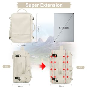 Hanples Mochila de viagem, uma mochila de marca de alta qualidade, foca no design e desenvolvimento de pessoas para viajar. Temos a missão de dar prioridade à experiência do usuário das pessoas, explorando e buscando um estilo de vida moderno, de alta eficiência e único. À prova de A mochila para laptop tem boas almofadas grossas no compartimento do laptop e no compartimento principal para proteger o laptop e outros itens dentro da mochila. É adequada para laptop de 17,3 polegadas. Maior capacidade A mochila de mão pode ser estendida para 40 L (40 x 32 x 20 cm), e o tamanho do compartimento principal 43 x 30 cm x 18 cm. Você pode levá-la para viagens de 3 a 7 dias. À prova d'água. A mochila geral para viagens é feita de tecido à prova d'água para evitar que você se molhe em dias chuvosos, e também há um compartimento de separação seco e molhado dentro, o que é conveniente para você guardar roupas de reposição molhadas. Alça grossa e larga As alças de ombro da mochila de viagem podem ser escondidas e as alças superiores e laterais grossas e largas podem ser usadas como bolsa de mão e também há uma alça de bagagem para ajudá-lo a fixá-la na mala. Esponja respirável A parte de trás da mochila casual é feita de esponja elástica e respirável. É respirável e pode tirar o calor sem superaquecer suas costas. Este item não se destina a ser utilizado por crianças menores de 12 anos. - [Capacidade expansível e adequada para laptop de 17,3 polegadas]: esta mochila para laptop tem um compartimento para laptop com boa almofada grossa, que pode proteger bem o seu laptop e também é adequada para laptops de 17,3 polegadas. Esta mochila de viagem tem muito espaço e bolsos para o que você precisa, e a capacidade é de 35 L. Uma boa companhia para viagens de 3 a 5 dias. (Peso líquido da mochila: 0,9 kg) - [Como item pessoal aprovado pela companhia aérea]: projetada exclusivamente para viagens de avião, esta mochila de mão pode ser aberta de 90 a 180 graus facilmente e rapidamente na segurança do aeroporto. Projetada para caber no tamanho máximo permitido em um voo, está disponível para manter sob o assento em voo como item pessoal, para companhias aéreas como Spirit, Easy Jet, Jet Blue - [Porta aberta multifuncional para carregar e ouvir]: a porta versátil do lado da mochila de viagem pode fornecer acesso conveniente para carregar seu telefone ou você pode usá-lo como uma porta de fone de ouvido para ouvir sua música premium. (Dicas: apenas uma porta aberta, cabo de carregamento e carregador portátil não estão incluídos) - [Material impermeável e design antirroubo]: esta mochila de viagem feminina é feita de poliéster impermeável durável, boa permeabilidade ao ar e dissipação de calor. O bolso traseiro com zíper da mochila protege seus itens preciosos, como carteira, passaporte e cartão de identificação de possíveis roubos ao viajar ou fazer fila. (Dica de limpeza: esfregue com um pano, se necessário) - [Durável e multiuso]: todos os zíperes desta mochila de mão são duráveis, suaves e resistentes à prova de explosão. As alças de ombro podem ser escondidas, para que você possa carregá-la como uma pasta usando a alça lateral. Há também uma alça de bagagem para ajudar você a fixá-la na mala
