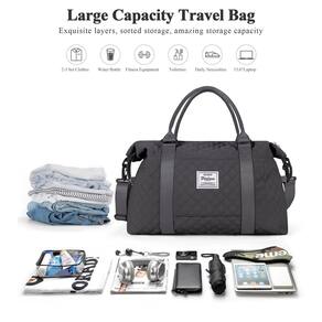 Bolsa esportiva de viagem - Design separado a seco e molhado: o bolso molhado pode ajudá-lo a separar itens secos e molhados, se você tiver roupas ou toalhas molhadas, você pode colocá-la nesta bolsa de ginástica. Não se preocupe com eles ficarem molhados - Grande capacidade e vários bolsos: esta bolsa de viagem tem 6 vários bolsos organizacionais internos e 2 externos, o que garante que você tenha um lugar para tudo. Dimensões: 30 x 58 x 18 cm; Capacidade: 30 L; Adequado para uma viagem de 3 a 5 dias - Bolsa de viagem adequada para aviões: a bolsa de mão perfeita para viagens aéreas. A manga de carrinho integrada desliza sobre a alça de bagagem, facilitando as viagens no aeroporto. Sua bolsa de embarque ideal para o fim de semana para viagens de negócios ou pessoais - Bolsa esportiva de ampla aplicação: uma escolha perfeita para você carregar todos os seus esportes, academia, viagens de fim de semana, uso diário e itens essenciais de viagem. Use como bolsa de viagem, bolsa de fim de semana, bolsa de mão, bolsa de itens pessoais, bolsa de ginástica - Bolsa de fim de semana com pontos extras: as bolsas de viagem femininas vêm com uma alça ajustável removível, você pode carregá-la como bolsa de ombro, bolsa de mão ou bolsa cruzada como quiser. As bolsas femininas de fim de semana são feitas de tecido de nylon resistente a rasgos de alta qualidade