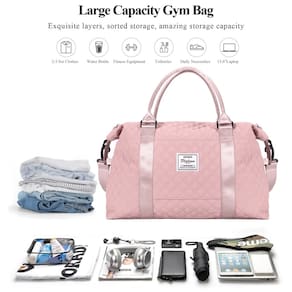 Bolsa esportiva de viagem - Design separado a seco e molhado: o bolso molhado pode ajudá-lo a separar itens secos e molhados, se você tiver roupas ou toalhas molhadas, você pode colocá-la nesta bolsa de ginástica. Não se preocupe com eles ficarem molhados - Grande capacidade e vários bolsos: esta bolsa de viagem tem 6 vários bolsos organizacionais internos e 2 externos, o que garante que você tenha um lugar para tudo. Dimensões: 30 x 58 x 18 cm; Capacidade: 30 L; Adequado para uma viagem de 3 a 5 dias - Bolsa de viagem adequada para aviões: a bolsa de mão perfeita para viagens aéreas. A manga de carrinho integrada desliza sobre a alça de bagagem, facilitando as viagens no aeroporto. Sua bolsa de embarque ideal para o fim de semana para viagens de negócios ou pessoais - Bolsa esportiva de ampla aplicação: uma escolha perfeita para você carregar todos os seus esportes, academia, viagens de fim de semana, uso diário e itens essenciais de viagem. Use como bolsa de viagem, bolsa de fim de semana, bolsa de mão, bolsa de itens pessoais, bolsa de ginástica - Bolsa de fim de semana com pontos extras: as bolsas de viagem femininas vêm com uma alça ajustável removível, você pode carregá-la como bolsa de ombro, bolsa de mão ou bolsa cruzada como quiser. As bolsas femininas de fim de semana são feitas de tecido de nylon resistente a rasgos de alta qualidade