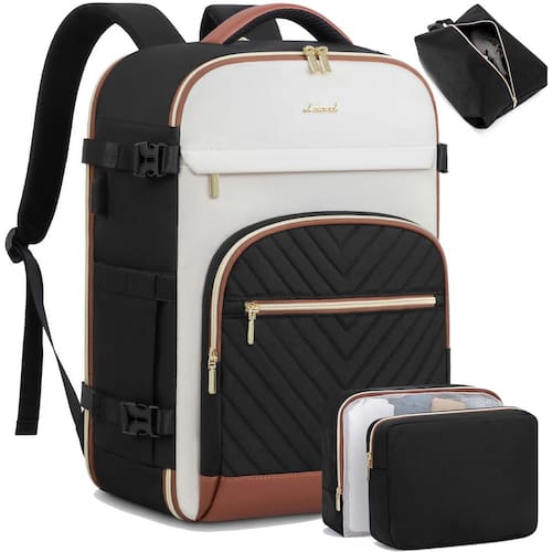 Esta grande mochila de viagem feminina combina uma capacidade de 40 litros com um design multifuncional para atender às necessidades de viagens de 3 a 6 dias, além de apresentar conveniências projetadas para viagens aéreas, como um layout amigável ao TSA e dimensões que atendem aos padrões de várias companhias aéreas, garantindo estilo e praticidade durante sua viagem. Feita de poliéster durável e impermeável, a mochila não apenas oferece excelente respirabilidade e dissipação de calor, mas também oferece um bolso antirroubo e várias opções de transporte, tornando-a a escolha ideal para viagens de negócios, aventuras ao ar livre ou viagens diárias. - ?Aprovada pela companhia aérea e compatível com TSA?: esta bolsa de mão de 40,6 x 28 x 19 cm é perfeita para companhias aéreas econômicas como Spirit, Frontier, Easy Jet, Jet Blue e muito mais, encaixando-se em compartimentos aéreos e sob assentos. O compartimento separado para laptop pode abrir 180° para facilitar as verificações de segurança. - ?Grande capacidade e vários bolsos?: Prepare-se sem esforço para uma viagem de 2 a 4 dias com esta mochila lovevook de 35 L, que possui 19 bolsos diversos para acomodar todos os seus itens essenciais de viagem, como roupas, cosméticos, sapatos, livros, um laptop de 15,6 polegadas e muito mais. - ?3 cubos de embalagem extra e bolsos úmidos?: Mantenha a organização sem esforço em sua mochila de bagagem com três cubos de embalagem de tamanhos variáveis projetados para roupas íntimas, roupas molhadas, roupas sujas e sapatos. O bolso especializado para separação seca e úmida da mochila de viagem, feito de material impermeável de alta densidade, garante que seus produtos de higiene pessoal e roupas úmidas permaneçam segregados e bem organizados. - ?Resistente e confortável?: esta bolsa de itens pessoais aprovada por companhias aéreas, feita de materiais resistentes a rasgos, à prova d'água e à abrasão, possui alças de ombro ajustáveis e um painel traseiro acolchoado, adequada para transporte confortável de longa distância. - ?Prática e conveniente?: Carregue sua mochila para viagens facilmente com alças na parte superior e em um lado. Bolsos laterais para garrafas de água e guarda-chuvas e uma alça de bagagem permitem que ela deslize facilmente em um tubo de bagagem, é um item essencial perfeito para viagens de avião. Esta mochila de viagem feminina torna as viagens de longa distância, caminhadas, ciclismo, viagens de negócios, férias e acampamento mais confortáveis e agradáveis. - ?Serviço pós-venda superior?: a mochila de viagem Lovevook vem com um serviço de reparo de um ano, garantindo tranquilidade. Para quaisquer problemas de qualidade ou danos, nosso suporte de reparo profissional garante que sua mochila permaneça em ótimas condições. Este serviço promete confiabilidade duradoura e uma experiência de compra gratificante.