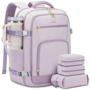 LOVEVOOK Mochila de viagem grande para mulheres e homens, mochila de mão de 40 L para aviões, bolsa de viagem TSA para itens pessoais para laptop de 17 polegadas, à prova d'água, aprovada por companhias aéreas com 2 organizadores - Aprovado por companhias aéreas e TSA: experimente viagens aéreas sem desconforto com nossa mochila de mão. Medindo 36 x 23 x 50 cm, cabe confortavelmente em compartimentos suspensos e sob o assento. Projetada para verificações rápidas de segurança, abre 180 graus, tornando-a a companhia de viagem perfeita para suas viagens. - Grande capacidade com ótima organização: esta mochila de viagem possui uma capacidade generosa de 50 L, perfeita para 3-5 dias de itens essenciais de viagem. 3 compartimentos grandes e 18 bolsos, garantindo que tudo esteja bem organizado. Um compartimento dedicado e acolchoado cabe em um laptop de 18 polegadas para máxima segurança. O bolso elástico para garrafa de água segura com segurança uma garrafa de 500 ml. Este design versátil torna esta mochila perfeita para viagens, viagens de negócios, escapadelas de fim de semana e uso diário. - Resistente e confortável: atualizada com zíperes à prova de explosão e tecido resistente à água, esta mochila foi construída para longevidade. Suas alças de ombro reforçadas e resistentes a rasgos e acolchoamento de esponja respirável garantem conforto e longevidade. É perfeita como uma mochila de transporte para aviões, mochila de viagem de um dia de fim de semana, mochila noturna, mochila de acampamento para caminhadas, mochila de negócios, mochila de trabalho, mochila universitária ou mochila casual. - Com 3 organizadores e bolso molhado: nossa mochila de viagem para mulheres equipada com 2 cubos de mão, é ideal para guardar roupas íntimas, meias e roupas pequenas. Uma bolsa de sapato equipada com 42 cm de comprimento, pode armazenar de 1 a 2 pares de sapatos. O bolso úmido impermeável de alta densidade é perfeito para produtos de higiene pessoal e roupas úmidas, mantendo seus pertences de viagem organizados e separados. - Presente ideal para entusiastas de viagens: a mochila LOVEVOOK para mulheres é um presente perfeito para aniversários, Ação de Graças, Natal, Ano Novo e Dia dos Namorados. Adequada para homens e mulheres, esposa, namorada, mãe, filha e amigas, é uma companhia versátil como uma mochila de viagem aprovada em voo, mochila para laptop de viagem ou pacote de itens pessoais.