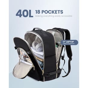 Dimensões: 47 x 35,5 x 20 cm (C x L x A). Capacidade: 40 litros. Tecido leve e impermeável. Ocasiões: é uma boa mochila de viagem, mochila de cabine, mochila de mão, mochila feminina, mochila para laptop de 17 polegadas e mala/mochila de fim de semana. Pode ser usada como mochila, bolsa de cabine, mochila EasyJet, mochila feminina, mochila feminina, bolsa de viagem - ??Grande capacidade e vários bolsos?: a mochila de viagem tem uma grande capacidade de 40 L e 4 compartimentos principais, que podem atender às necessidades diárias e de viagem. A mochila de viagem para o compartimento principal feminino pode armazenar muitas coisas, incluindo 5-8 peças de roupas, sapatos, livros e muitos outros itens. O compartimento separado para laptop é acolchoado com espuma EVA para fornecer a melhor proteção para o seu laptop de 17 polegadas e iPad de 12,9 polegadas. O compartimento frontal tem muitos bolsos para manter seus pertences organizados. - ??Conforme aprovado pela companhia aérea de itens pessoais:? O tamanho da mochila de mão é de 45 x 35 x 20 cm. Atende ao tamanho máximo permitido pela maioria dos voos da Associação Internacional de Transporte Aéreo (IATA) e pode ser colocada no compartimento de bagagem superior e na bagagem sob o assento das companhias aéreas, adequada para Spirit, Frontier, Easy Jet, Jet Blue e outras companhias aéreas. Esta mochila de viagem para mulheres aprovada por companhias aéreas pode ser aberta livremente de 90 a 180 graus com facilidade e rapidez na verificação de segurança do aeroporto. - ??Com 3 organizadores e bolsos úmidos?: esta mochila impermeável para mulheres está equipada com 3 bolsos de armazenamento adicionais, incluindo 2 bolsos de armazenamento de bagagem e 1 bolso para sapatos. Você pode colocar roupas íntimas, meias e roupas pequenas ordenadamente dentro. A bolsa para sapatos tem 42 cm de comprimento e pode armazenar de 1 a 2 pares de sapatos. Você também pode colocar seus produtos de higiene pessoal e roupas molhadas dentro da bolsa de separação seca e úmida feita de material impermeável de alta densidade para manter sua viagem organizada. - ??Confortável e durável?: Esta mochila de mão aprovada usa zíperes YKK de metal resistente à prova de explosão e costura reforçada atualizada para durar mais tempo. O design de malha de esponja respirável de alta espessura nas alças de ombro pode reduzir a pressão nos ombros e deixar sua mochila mais leve e fresca. Use-a como uma mochila de fim de semana, caminhadas, acampamento, viagem de avião, mochila de negócios, mochila universitária ou mochila casual. - ??Design prático e confortável?: esta mochila de viagem grande tem alças na parte superior e em um lado. Pode ser facilmente usada no dia a dia. Mochila multifuncional: híbrida (mochila, bolsa, bolsa de ombro, bolsa de viagem). Um bolso de um lado pode armazenar uma garrafa de água ou um guarda-chuva; a alça de bagagem permite que a bolsa de viagem do item pessoal deslize no tubo da bagagem, garantindo uma viagem aérea fácil. - ??Melhor presente?: a mochila para laptop LOVEVOOK é a melhor escolha de presente para sua esposa, namorada, mãe, filha, amigas, etc. em aniversários, Dia de Ação de Graças, Natal, Ano Novo e Dia dos Namorados. Acredite na sua escolha e viaje feliz com sua família.