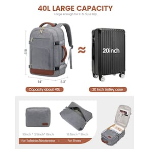 LOVEVOOK Mochila de viagem grande para mulheres e homens, mochila de mão de 40 L para aviões, bolsa de viagem TSA para itens pessoais para laptop de 17 polegadas, à prova d'água, aprovada por companhias aéreas com 2 organizadores - ???Aprovado por companhias aéreas e compatível com TSA?: Experimente viagens aéreas sem desconforto com nossa mochila de mão. Medindo 35,5 x 21 x 47 cm, cabe confortavelmente em compartimentos suspensos e sob o assento. Projetada para verificações rápidas de segurança, abre 180 graus, tornando-a a companhia de viagem perfeita para suas viagens. - Grande capacidade com ótima organização: esta mochila de viagem possui uma capacidade generosa de 40 L, perfeita para 3 a 5 dias de itens essenciais de viagem. 3 compartimentos grandes e 18 bolsos, garantindo que tudo esteja bem organizado. Um compartimento dedicado e acolchoado cabe em um laptop de 17,3 polegadas para máxima segurança. O bolso elástico para garrafa de água segura com segurança uma garrafa de 500 ml. Este design versátil torna esta mochila perfeita para viagens, viagens de negócios, escapadelas de fim de semana e uso diário. - Durável e confortável: atualizada com zíperes à prova de explosão e tecido resistente à água, esta mochila é feita para longevidade. Suas alças de ombro reforçadas e resistentes a rasgos e acolchoamento de esponja respirável garantem conforto e longevidade. É perfeita como uma mochila de transporte para aviões, mochila de viagem de um dia de fim de semana, mochila noturna, mochila de acampamento para caminhadas, mochila de negócios, mochila de trabalho, mochila universitária ou mochila casual. - ?? Com 2 organizadores e bolso úmido?: nossa mochila de viagem feminina equipada com 1 bolso de mão, é ideal para guardar roupas íntimas, meias e roupas pequenas. Uma bolsa de sapato equipada com 42 cm de comprimento, pode armazenar de 1 a 2 pares de sapatos. O bolso úmido impermeável de alta densidade é perfeito para produtos de higiene pessoal e roupas úmidas, mantendo seus pertences de viagem organizados e separados. - 🎁?Presente ideal para entusiastas de viagens?: A mochila LOVEVOOK para mulheres é um presente perfeito para aniversários, Ação de Graças, Natal, Ano Novo e Dia dos Namorados. Adequada para homens e mulheres, esposa, namorada, mãe, filha e amigas, é uma companhia versátil como uma mochila de viagem aprovada em voo, mochila para laptop de viagem ou pacote de itens pessoais.