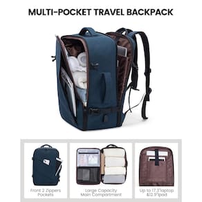 Mochila de viagem excepcional para melhor organização e conveniência dimensões e grande capacidade: medindo 53 x 34 x 23 cm, esta mochila de viagem é uma mistura perfeita de espaço e conveniência. Ela se expande até 40 L, oferecendo amplo espaço para suas necessidades de viagem enquanto ainda cumpre os padrões de bagagem de mão. Três organizadores de embalagem versáteis: vem com três cubos de embalagem especialmente projetados para simplificar a embalagem. O cubo grande é ideal para suéteres e jaquetas, um cubo médio para camisas e shorts e um pequeno cubo resistente à água para produtos de higiene pessoal e itens pessoais. Este recurso mantém seus pertences bem organizados e facilmente acessíveis. Porta de carregamento USB para viajantes experientes em tecnologia: mantenha-se conectado com uma porta de carregamento USB integrada. Oferece uma maneira sem complicações de carregar seus dispositivos em movimento (observação: carregador portátil não incluído). Este recurso é perfeito para viajantes experientes em tecnologia que precisam de seus dispositivos prontos o tempo todo. Design ergonômico para transporte confortável: experimente conforto com acolchoamento ventilado e alças ajustáveis, projetadas para reduzir a tensão nos ombros e nas costas durante longas viagens. O design ergonômico garante que você possa carregar a mochila com facilidade, seja em terminais de aeroportos ou ruas da cidade. Material durável e resistente à água: Feita com poliéster resistente à água de alta qualidade, esta mochila foi construída para suportar os rigores da viagem. O material garante que seus itens permaneçam secos e seguros, seja você pego em uma garoa ou caminhando por terrenos acidentados. Conversível para estilos de viagem flexíveis: esta versatilidade a torna ideal para todos os tipos de viagens, desde viagens de negócios a escapadas de fim de semana. Companhia perfeita para várias necessidades de viagem: seu tamanho e características a tornam adequada para uma variedade de ocasiões de viagem. Seja você um viajante de fim de semana, uma faculdade ou um profissional em uma viagem de negócios, esta mochila é uma excelente escolha. Também é um presente atencioso para quem gosta de viajar. Esta mochila não é apenas uma mochila de mão, de fim de semana ou para laptop; é um item essencial de viagem para quem procura uma mochila de caminhada, uma mochila à prova d'água ou uma mochila com um compartimento para sapatos. Ideal para homens e mulheres, é a melhor escolha para quem procura uma solução de viagem durável, espaçosa e organizada. - Grande capacidade de 50 litros: esta mochila de viagem tem 4 compartimentos extra grandes, perfeita para embalar cubos, roupas e equipamentos tecnológicos, adequada para homens e mulheres viajantes. - 3 organizadores de embalagem: vem com 3 cubos para armazenamento organizado de suéteres, jaquetas, calças, camisas, sapatos e produtos de higiene pessoal. Feita de poliéster resistente à água, protege seus pertences em várias condições climáticas. - Aprovada por voo e adequada para viagens: atende aos requisitos de bagagem de mão de companhias aéreas, perfeita para viagens de fim de semana, faculdade ou como um presente exclusivo. - Porta de carregamento USB: equipada com uma porta USB externa e cabo interno para facilitar o carregamento do dispositivo em movimento (carregador portátil não incluído). - Confortável para viagens: projetada com acolchoamento ventilado e alças ajustáveis para conforto, inclui uma alça de bagagem para facilitar o transporte.