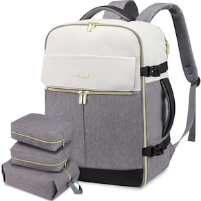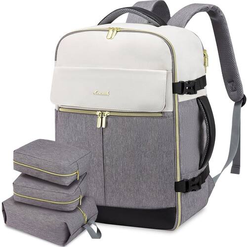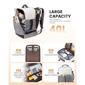Mochila de viagem para mulheres: feita de tecido de nylon impermeável premium que é leve e durável, esta mochila multifuncional possui um design de grande capacidade de 40 litros com compartimentos de armazenamento bem projetados e 14 bolsos para armazenamento organizado. Um compartimento separado para laptop de 17 polegadas oferece proteção segura para o seu laptop, tornando-o conveniente para você carregar enquanto trabalha, viaja, viagens de fim de semana ou frequenta a universidade. Com 3 organizadores organizadores: esta mochila de mão vem com 3 organizadores de tamanhos diferentes para organizar roupas íntimas, suéteres e calças, facilitando encontrar os itens que você precisa em várias situações, como viagens, voos e escritório. Estes cubos ajudam a diferenciar e categorizar facilmente vários itens, mantendo-os limpos e organizados. - Mochila de viagem para mulheres: Feita de tecido de nylon impermeável premium que é leve e durável, esta mochila multifuncional possui um design de grande capacidade de 40 L com compartimentos de armazenamento bem projetados e 14 bolsos para armazenamento organizado. Um compartimento separado para laptop de 17 polegadas oferece proteção segura para o seu laptop, tornando-o conveniente para você carregar enquanto trabalha, viaja, viagens de fim de semana ou frequenta a universidade. - Com 3 organizadores de embalagem: esta mochila de mão vem com 3 cubos de embalagem de tamanhos diferentes para organizar roupas íntimas, suéteres e calças, facilitando encontrar os itens que você precisa em várias situações, como viagens, voos e escritório. Estes cubos ajudam a diferenciar e categorizar facilmente vários itens, mantendo-os limpos e organizados. - Mochila para viajar de avião: Informações de tamanho: 47 x 33 x 21,6 cm. Adequada para a maioria dos regulamentos das companhias aéreas, nossa mochila para laptop de viagem segue os padrões TSA. O compartimento dedicado para laptop na parte traseira pode ser aberto a 180 graus, permitindo que você passe facilmente pelas verificações de segurança e encaixe confortavelmente sob assentos de avião e em compartimentos aéreos como uma mochila de item pessoal, seja voando ou viajando por terra, esta mochila de viagem acompanhará você sem preocupações. - Design prático e prático: a abertura em estilo mala (aberta livremente de 0 a 180 graus) é combinada com uma aparência moderna para acesso rápido e fácil aos seus pertences. A mochila da mala é complementada por uma bolsa de carrinho e bolso antirroubo, não apenas para aumentar a segurança, mas também adicionar conveniência à sua viagem. - Design de compartimentos úmidos: com um bolso de separação molhado e seco, a mochila de viagem feminina oferece espaço de armazenamento seguro para seus produtos de higiene pessoal, evitando efetivamente que vazamentos afetem outros itens. Especialmente projetada para armazenar itens de cuidados pessoais, como escovas de dentes elétricas e toalhas, é conveniente para manter a limpeza pessoal durante a viagem.