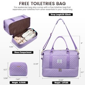 Bolsas de viagem femininas - ?Bolsa de viagem com compartimento para sapatos + bolsa de banheiro separada ?Esta bolsa de viagem para mulheres vem com uma bolsa de higiene pessoal de US $15 para guardar seus cosméticos/produtos de higiene pessoal. Compartimento inferior plano separado desta bolsa feminina pode guardar seus sapatos ou roupas sujas para facilitar a separação de roupas limpas ao viajar. Se você é uma mãe novata, a parte inferior também é perfeita para armazenar fraldas/lenços/itens de bolsa de fraldas. Também pode ser usada como bolsa hospitalar, bolsa para mamãe e bolsa médica. - ?Bolsas de transporte para aviões?Tamanhos: 48 x 23 x 34 cm, 1 kg, LOVEVOOK bolsa de fim de semana para mulheres atende à maioria dos requisitos internacionais de bagagem de mão. Cabe no compartimento superior e embaixo do assento como itens pessoais em voo. A manga de carrinho integrada desliza sobre a alça de bagagem, facilitando as viagens no aeroporto. Um bolso com zíper na parte traseira para guardar seu smartphone, identidade ou passaporte. Sua bolsa de embarque ideal para o fim de semana para viagens de negócios ou pessoais. - ?Bolsa estilosa de fim de semana e bolsas de noite para mulheres?Esta bolsa grande pode servir em 3 a 5 dias de itens essenciais diários. Vários bolsos para manter seus itens pessoais organizados: um compartimento principal espaçoso com 5 bolsos grandes para itens pessoais e na frente da bolsa esportiva para viagens, há um bolso para facilitar o acesso a eletrônicos ou materiais de viagem. Com aparência elegante e linda. Nossa bolsa esportiva acolchoada alcança a maior demanda feminina urbana e fantasia em bolsa de viagem. - ?Bolsa de ginástica separada e úmida? Um bolso forrado de PVC à prova d'água com zíper pode ajudar você a separar itens secos e molhados. Se você tiver roupas ou toalha molhadas, pode colocá-la nesta bolsa de ginástica para mulheres. Nossa bolsa de ginástica feminina é uma companhia perfeita e confiável para esportes internos e externos. É perfeita para treino, ioga, tênis, basquete, natação, acampamento e muitas atividades ao ar livre. - ?Bolsa esportiva multiuso e serviço perfeito?Use-a como bolsa esportiva para viagens, bolsa de fim de semana para mulheres, bolsa de viagem para itens pessoais, bolsa de mamãe para hospital, bolsa de ginástica para mulheres, bolsa de mão ou bolsa de laptop. Ótimo presente de aniversário/Ação de Graças/Natal para seus amigos e familiares.