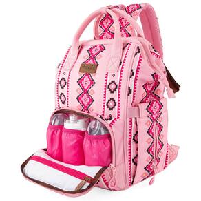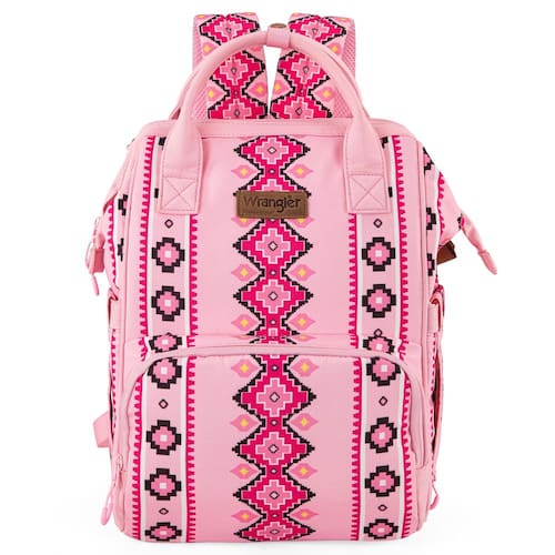 Montana West Mochila de viagem Wrangler Aztec Bolsa de bebê ocidental multifuncional com bolsos isolados à prova d'água, rosa, Asteca - Padrão Sudoeste: Abrace o vibrante e lindo padrão asteca da bolsa de fraldas Wrangler. A estética robusta e chique Wrangler adiciona um toque moderno, tornando os pais mais convenientes e estilosos - Dimensões práticas: com dimensões de 27,4 cm x 36,3 cm x 18,3 cm, esta mochila atinge o equilíbrio perfeito entre compacidade e praticidade. É espaçosa o suficiente para carregar todos os seus itens essenciais, mas compacta e leve para facilitar a portabilidade - Funcionalidade versátil: projetada para mais do que apenas carregar itens essenciais para bebês, esta mochila é a sua escolha para vários fins. Se você estiver usando como uma bolsa de fraldas, para viagens, caminhadas ou uso diário, ela se adapta perfeitamente às suas necessidades - Interior organizado: mantenha-se organizado sem esforço com o compartimento principal com zíper com cinco bolsos internos. O compartimento frontal inclui três bolsos isolados, perfeitos para manter garrafas e lanches na temperatura ideal. O espaçoso compartimento de bolso aberto na parte traseira oferece fácil acesso ao interior da mochila, enquanto bolsos adicionais em ambos os lados oferecem armazenamento extra - Confortável e ajustável: a mochila garante conforto durante o uso prolongado, graças às suas alças ajustáveis e acolchoadas. Se você estiver carregando nas costas ou usando a alça superior para opções de transporte adicionais, a conveniência está na vanguarda do seu design