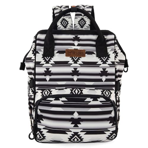 Montana West Mochila de viagem Wrangler Aztec Bolsa de bebê ocidental multifuncional com bolsos isolados à prova d'água, * Preto, Moderno - Padrão Sudoeste: Abrace o vibrante e lindo padrão asteca da bolsa de fraldas Wrangler. A estética robusta e chique Wrangler adiciona um toque moderno, tornando os pais mais convenientes e estilosos - Dimensões práticas: com dimensões de 27,4 cm x 36,3 cm x 18,3 cm, esta mochila atinge o equilíbrio perfeito entre compacidade e praticidade. É espaçosa o suficiente para carregar todos os seus itens essenciais, mas compacta e leve para facilitar a portabilidade - Funcionalidade versátil: projetada para mais do que apenas carregar itens essenciais para bebês, esta mochila é a sua escolha para vários fins. Se você estiver usando como uma bolsa de fraldas, para viagens, caminhadas ou uso diário, ela se adapta perfeitamente às suas necessidades - Interior organizado: mantenha-se organizado sem esforço com o compartimento principal com zíper com cinco bolsos internos. O compartimento frontal inclui três bolsos isolados, perfeitos para manter garrafas e lanches na temperatura ideal. O espaçoso compartimento de bolso aberto na parte traseira oferece fácil acesso ao interior da mochila, enquanto bolsos adicionais em ambos os lados oferecem armazenamento extra - Confortável e ajustável: a mochila garante conforto durante o uso prolongado, graças às suas alças ajustáveis e acolchoadas. Se você estiver carregando nas costas ou usando a alça superior para opções de transporte adicionais, a conveniência está na vanguarda do seu design
