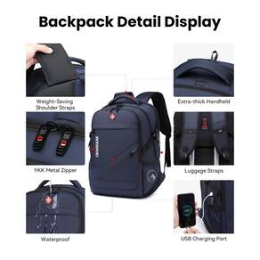 A mochila Swiss Heavy Duty Flight Travel Laptop apresenta: Vários compartimentos e bolsos: Compartimento separado para laptop: cabe laptops de até 17,3 polegadas e um compartimento para iPad. Compartimento principal: também pode guardar livros, cadernos, revistas, bolsa de maquiagem, estojo, roupas, bolsa de higiene, fones de ouvido, câmera e outros suprimentos diários etc. Bolso de organização de documentos: para passaporte, canetas, powerbank, chaves, carteira, bolsa, óculos, pasta A4 e outros itens pequenos. Bolso frontal: para carregadores, celulares, consoles de jogos, iPads e outros pequenos dispositivos eletrônicos e outros itens pequenos. Bolso frontal inferior: para guardar lenços umedecidos, passes de ônibus, moedas e outros itens pequenos. Bolsos laterais: serve para garrafa de água de 947 ml, guarda-chuva ou outros itens. Funcional e segura: uma alça de bagagem permite que a bolsa de laptop de viagem se encaixe na bagagem/mala, deslize sobre o tubo da alça vertical para facilitar o transporte. Trava combinada na lateral da mochila, senha inicial "0.0 cm, um pequeno bolso antirroubo localizado na parte inferior das costas mantém seu passaporte, carteira, telefone e outros itens valiosos seguros e práticos. Cinto interno à prova de choque para prender seu laptop e iPad, evitando que deslizem e batam. Laterais da alça de ombro com design de cordão, pode pendurar óculos de sol e outros pequenos pingentes para viagens. Tecidos de alta qualidade: a mochila de viagem é feita de material de alta qualidade com forro de nylon para melhor resistência à água e mochila resistente mochila grande para laptop tecido impermeável que fornece seus pertences molhados. Zíper de metal forte, durável e suave para caminhadas na cidade e viagens. Observação: esta bolsa grande para livros é à prova d'água, mas não por muito tempo na chuva! Porta de carregamento USB: mochila de voo multifuncional durável para laptop de 17,3 polegadas com porta de carregamento USB externa para mulheres e homens e cabo de carregamento integrado pode carregar facilmente e convenientemente seu smartphone, tablet e outros dispositivos eletrônicos enquanto caminha. Mochila para laptop Utility University: A bolsa grande para laptop é o essencial de volta para a universidade. Perfeita para salas de aula, professores, atividades internas e externas. Mochila de viagem de mão: A bagagem de mão aprovada pela companhia aérea pode ser colocada acima e embaixo do assento. Perfeita para viagens internacionais ocasionais, viagens curtas de fim de semana, viagens de avião, caminhadas ao ar livre, acampamento, mochila de negócios para homens e mulheres. Ótimo presente chioce: Como mochila de uso diário, mochila de trabalho, bolsa para laptop de negócios para homens, mulheres, adultos ou uso diário em qualquer lugar. Melhor presente de dia dos pais/dia das mães para seu marido/esposa/amante/filho/filha; Estamos comprometidos em fornecer aos clientes mochilas exclusivas e de alta qualidade. Se você tiver algum problema com nossas mochilas, , responderemos com você dentro de 12 horas. - Alça de bagagem e trava antirroubo: mochilas de viagem grandes com o cinto de bagagem na parte de trás, o viajante de negócios pode caber na mochila de mão diretamente na mala de bagagem para facilitar o transporte, o que libera suas mãos. O compartimento para laptop é projetado com uma trava de combinação para proteger efetivamente objetos de valor contra perda, senha inicial 000. Um bolso oculto antirroubo na parte traseira protege sua carteira, passaporte e itens valiosos de ladrões. A bolsa de viagem para laptop é um item essencial para viagens de negócios - Grande capacidade com vários compartimentos: mochila de viagem para laptop masculina com mais de 10 bolsos independentes para armazenamento grande e organização de itens pequenos. Mochila de trabalho para computador 4 compartimentos principais espaçosos múltiplos com muitos bolsos ocultos pode acomodar muitas coisas como acessórios de viagem, roupas, cadernos, bolsos para canetas, gancho para chaveiro, 2 bolsos laterais comporta uma garrafa de água de 946 ml e guarda-chuva muito bem organizados e fáceis de encontrar. Mochila de laptop ideal para homens e mulheres. - Mochila multifuncional e prática: as mochilas masculinas casuais têm uma porta de carregamento USB externa e um cabo de carregamento configurado que pode ser facilmente conectado. Alça de ombro para mochila de bagagem com design de cordão, pode pendurar óculos de sol e outros pingentes pequenos. A alça de transporte grossa facilita o transporte da mochila com menos desconforto no metrô, caminhadas, viagens. Mochilas são uma boa opção de presente para homens e mulheres. Observação: a mochila é à prova d'água, mas não por muito tempo na chuva! - Dimensão da mochila e material durável: Mochila grande e leve de tamanho: 48 x 15 x 34 cm, capacidade: 24 L. Ótimo para colocar sob seu assento em um avião quando você estiver viajando ou em viagem de negócios. Compartimento acolchoado separado para laptop/iPad de 14, 15,6 e 17,3 polegadas. A bolsa de viagem é feita de tecido de poliéster de alta qualidade, os materiais resistentes resistirão à abrasão e são fáceis de limpar, o zíper feito de material metálico é forte e suave, os zíperes duráveis fecham e abrem suavemente. - Confortável e durável: mochila de viagem com design de ventilação tridimensional em forma de U nas costas, alças de ombro de malha larga e respirável confortáveis com almofada de esponja abundante ajudam a aliviar o desconforto e proteger o laptop do seu ombro. Serve como bolsa grande para laptop ou mochila de computador de negócios, quando você estiver viajando ou em viagem de negócios, você pode usá-la em qualquer lugar para viagens internacionais, acampamento, caminhadas, viagens. Se você tiver algum problema com esta bolsa de livros, .