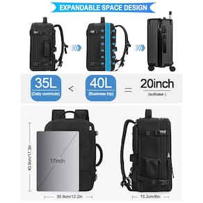 Especificações: Tecido: poliéster de qualidade resistente à água. Ocasiões: viagem/negócios/faculdade/trabalho/caminhadas/presentes. - Projetada para viagens: - Tamanho aprovado pela companhia aérea: 44 x 31 x 21 cm. A mochila aprovada pela Getravel atende aos requisitos de portabilidade da maioria das companhias aéreas. Pode ser colocada no compartimento superior ou embaixo do assento. - Design expansível: a mochila tem um design expansível que pode ser expandido de 35 L para 40 L de espaço de armazenamento para mudar como você desejar, que é muito espaçosa e pode facilmente armazenar 3-7 dias de equipamento de viagem. - Sacos de armazenamento separados: os 2 sacos de lavagem podem manter seus itens pessoais limpos e arrumados, reduzir problemas de armazenamento e facilitar a viagem. Vários compartimentos e bolsos. 1. Compartimento principal: 35L-40L de espaço de armazenamento da mochila para trocar como desejar, a capacidade máxima pode armazenar 3-7 dias de roupas. 2. Compartimento para laptop: um bolso acolchoado para laptop que comporta um laptop de até 17 polegadas. 3. Bolso lateral frontal: para livro, caneta, carteira, bolsa, óculos ou outros itens. 4. Bolso frontal com zíper: para passaporte, chaves, fone de ouvido ou outros itens pequenos. 5. Bolsa de separação úmida e seca: a bolsa úmida de comprimento total é feita de material impermeável de alta densidade para isolar itens úmidos, como toalhas ou roupas molhadas, etc. 6. Bolso lateral: bolso lateral para guarda-chuva, garrafa de água, etc. Dicas quentes: 1. Não exponha a chuva forte por muito tempo sem qualquer capa de chuva. 2. Feche o zíper completamente e coloque o puxador de zíper na parte inferior, para evitar a abertura do zíper devido à forte agitação ao caminhar. Observação: este item não é destinado a ser utilizado por crianças menores de 3 anos. - Tamanho aprovado para voo: a mochila Getravel atende aos requisitos de portabilidade da maioria das companhias aéreas. As mochilas abrem facilmente de 0 a 180 graus e cabem sob o assento do avião ou no teto e ajudam você a passar pela segurança rapidamente - Mochila expansível de grande capacidade: nossa mochila pode ser expandida de 35 L para 40 L. Design de armazenamento com vários bolsos e zonas, que é muito espaçosa e pode armazenar facilmente de 3 a 7 dias de equipamento de viagem (tamanho: 44 x 31 x 21 cm; peso: 1 kg) - Design de orifício de carregamento USB: esta mochila grande com um design de orifício de carregamento USB facilita carregar seu telefone ou outros dispositivos enquanto viaja (o carregador portátil e o cabo não estão incluídos) - Com capa para carrinho e bolso antirroubo: esta mochila para laptop de 17 polegadas vem com uma alça de bagagem que pode prender a mochila à mala. Um bolso oculto com zíper antirroubo pode armazenar objetos de valor, como telefones celulares ou cartões para evitar roubo - 2 bolsas de higiene adicionais: esta bolsa de viagem vem com 2 bolsas de higiene. O design de cubo transparente à prova d'água oferece uma visão geral clara dos produtos de higiene pessoal, mantenha seus pertences limpos e organizados - Com bolsa acolchoada para laptop que comporta um laptop de até 17 polegadas. Suporte acolchoado de espuma e alça superior para um longo tempo de transporte. Esta mochila é perfeita para viagens de negócios, viagens, faculdade, uso diário no trabalho, etc