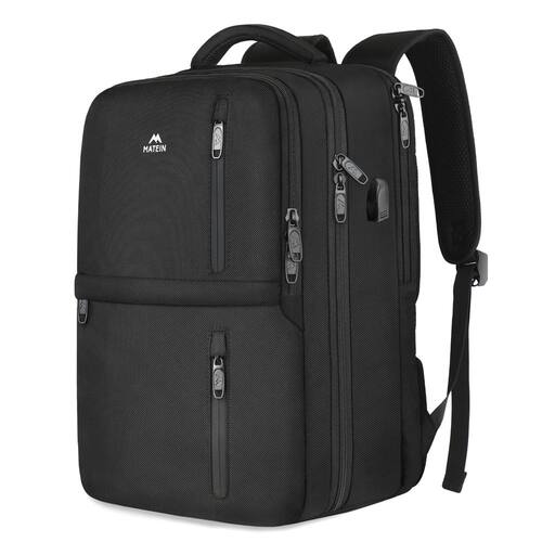 Ótima opção de presente. A mochila organizadora de viagem a torna adequada para uso diário e escapadas aos fins de semana. Torne sua viagem metódica O ótimo parceiro para faculdade, escritório, negócios, viagens, férias e qualquer outra ocasião diária Presentes práticos de férias para viajantes, amigos, mães, pais, homens ou mulheres. Características: Resistente, leve Antifurto: o bolso traseiro oculto pode guardar passaporte, celular, carteira; o zíper duplo do bolso para laptop é projetado com zíperes de metal trancáveis e seguro contra ladrões. No entanto, o cadeado não está incluído no pacote. Prepare você mesmo se necessário. Compartimento separado para laptop: serve para laptops e Macbook de até 15,6 polegadas Compartimento de sapatos na parte inferior da mochila é ótimo para sapatos femininos e masculinos. Bolsos de malha elástica confiáveis no lado esquerdo, adequado para garrafa de água, guarda-chuva compacto pequeno ou outros itens. Design respirável com acolchoamento de espuma macia nas costas, alças de ombro e pega, textura interna fina e oferece o máximo suporte para as costas A mochila de viagem para laptop é bem feita de tecido de poliéster resistente à água e resistente, pode proteger seus itens pessoais da chuva leve. Sobre a MATEIN: Na Matein, fornecemos mochilas da mais alta qualidade com o valor mais razoável para que todos os clientes possam encontrar uma mochila que adorem carregar. Criamos produtos que inspiram as pessoas a viver suas vidas com paixão; explorando, criando e vivendo a vida no momento. - MULTICOMPARTAMENTO: Dimensões 17 (A) x 12,5 (C) x 15 (L) polegadas, peso leve 0,87 kg); a mochila para laptop de viagem tem um compartimento separado para laptop que pode conter computadores de 15,6 polegadas e proteger o laptop de se mover; o compartimento principal com zíperes duplos tem espaço de armazenamento suficiente para guardar suas necessidades diárias para uma viagem noturna; o compartimento organizador tem muitos bolsos para manter seus itens organizados e mais fácil de encontrar ; Existem muitos outros bolsos para diferentes finalidades - Compartimento para sapatos: o compartimento para sapatos é feito na parte inferior da mochila grande para laptop para manter os sapatos separados. Este armazenamento de sapatos é largo o suficiente para guardar sapatos femininos e masculinos, que também podem ser utilizados como bolsas de higiene pessoal e para outros usos; há dois orifícios de ventilação no compartimento para sapatos, tornando-o respirável - Funcional e segura: interface USB com design de cabo integrado, ótima conveniência para carregar seus dispositivos eletrônicos conectando seu próprio carregador portátil. O design traseiro respirável e confortável oferece o máximo suporte para as costas; uma alça de bagagem permite que a mochila de viagem deslize com segurança sobre a alça de qualquer bagagem com rodinhas para transporte com as mãos livres, transporte mais fácil; com um bolso oculto antifurto na parte de trás, proteja seus itens valiosos de ladrões - Material confiável: a mochila de bagagem grande é bem feita de tecido de poliéster de qualidade repelente à água com zíperes de metal; há zíperes de metal bloqueáveis no bolso do laptop para proteger seu computador ou objetos de valor de ladrões (você precisa trancar o compartimento para laptop com sua própria trava); a alça acolchoada de espuma é confortável de carregar por um longo tempo - Dimensões: A capacidade das malas de viagem é de 25 L. Você pode carregá-la para o avião. A mochila para computador garante um uso seguro e duradouro todos os dias ou fim de semana, serve para você como bolsa de mão pessoal de viagem, viagem de negócios, mochila de atividades ao ar livre, ótima para homens, mulheres; presentes exclusivos de dia dos namorados para homens. Este item não se destina ao uso por menores de 12 anos
