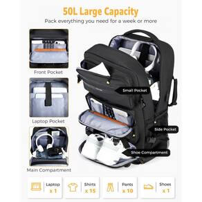 Ponhog Mochila de viagem masculina, bolsa de viagem conversível aprovada em voo de 50 L com compartimento para sapatos, bagagem para laptop de 17 polegadas com porta de carregamento USB para - Grande capacidade de 50 litros: esta mochila de viagem tem 10 bolsos, incluindo um bolso frontal de acesso rápido, um bolso antifurto na cintura, um bolso para garrafa de água, um bolso separado para sapatos e um compartimento para um computador e tablet de 17,3 polegadas. Os itens podem ser armazenados de maneira ordenada e segura, para que seja ideal para viagens de longa distância por 5 a 7 dias - Alças ergonômicas de conforto: a mochila de viagem Ponhog oferece excelente suporte de conforto, com um design ergonômico de alça de ombro em forma de S e acolchoamento traseiro de 2 mm de espessura para reduzir o desconforto da mochila de longo prazo, tornando-a fácil e sem desconforto mesmo em explorações urbanas ou caminhadas - Tamanho amigável para viagens: esta mochila de mão mede 31 x 20 x 56 cm. É projetada para viagens de avião e pode caber facilmente nos bagageiros de cabine da maioria das companhias aéreas. Se você sair no fim de semana, participar de eventos internacionais ou explorar o ar livre, esta mochila de viagem grande será sua parceira confiável - Versatilidade 3 em 1: o design da alça de ombro oculta permite que a mochila do laptop seja conversível em uma bolsa esportiva, bolsa de ombro e mochila em uma. Também é projetada com alças de bagagem que podem ser colocadas na mala para se adaptar a diferentes cenários de viagem. Você pode escolher a maneira mais conveniente de carregar e desfrutar de uma experiência de viagem flexível - Material confiável: a mochila de viagem masculina é feita de tecido de poliéster resistente à água e resistente e forro de nylon de alta densidade para melhor resistência a rasgos, e equipada com um zíper de metal para garantir o uso diário durável. Com um cabo USB integrado e bolso carregador portátil, esta mochila é perfeita para viajar. Obtenha uma mochila de viagem para começar sua jornada
