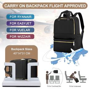 suratio Mochila de viagem aprovada para viagem pequena para mulheres, mochila de mão, item pessoal, bolsa de viagem, A - corrente dourada preta, M, Moda moderna - Dimensão: o tamanho da mochila é de 40 x 31 x 14 cm. Tamanho para medição manual, há um erro de 1-3 cm é normal, o real consulte o objeto recebido prevalecerá. - Vários bolsos: esta mochila para viajar de avião tem 1 bolso traseiro com zíper antirroubo que pode guardar itens valiosos; 2 bolsos laterais para guarda-chuvas dobráveis ou garrafas de água; 1 bolso grande projetado especificamente para armazenar laptops de 15,6 polegadas; 1 bolso frontal com zíper para armazenar itens pequenos; 1 bolso frontal com estrutura desdobrada, com dois compartimentos pequenos e um bolso interno com zíper oculto; um bolso principal especial de grande capacidade. - Design excelente: estas bolsas de mão podem combinar duas alças em uma através de botões, melhorando a conveniência do transporte; todos os zíperes são feitos de materiais de liga, com uma aparência delicada e não são facilmente oxidados; a parte traseira da mochila é projetada com uma alça de fixação, que pode fixar a mochila na alavanca da mala; os dois bolsos laterais têm uma estrutura elástica de borracha que pode proteger a garrafa de água. - Versatilidade: esta mochila feminina essencial de viagem tem uma capacidade muito grande e é adequada para usar como mochila de viagem; também pode ser usada como mochila para laptop e pode acomodar laptops de 15,6 polegadas; pode ser usada como mochila para calouros ou professores, e esta mochila é um excelente presente para calouros que acabaram de entrar na faculdade. - Confortável e durável: esta mochila grande à prova d'água com compartimento para laptop é feita principalmente de tecido de nylon resistente à água, que tem função de resistência à água e é resistente e durável. A alça de ombro traseira tem uma almofada de espuma embutida, que é confortável e macia, deixando seus ombros mais relaxados. A alça da mochila é envolta em couro sintético de alta qualidade, proporcionando uma excelente experiência portátil. - Design especial de bolso principal: o bolso principal desta mochila de viagem para laptop para mulheres adota um design estrutural especial semelhante a uma mala, que pode ser totalmente desdobrado para acomodar mais bagagem. Ao mesmo tempo, também é projetada com uma alça de fixação de bagagem e 2 compartimentos de malha, que podem armazenar bagagem de forma razoável, você pode usá-la como uma pequena mala.