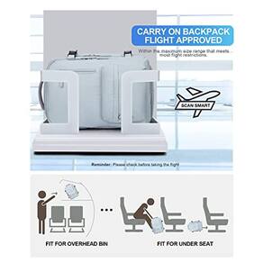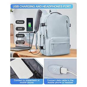 Mochila de viagem grande VGCUB para mulheres e homens, mochila de mão, mochila impermeável para trabalho empresarial de 17 polegadas com compartimento para laptop, item personalizado aprovado para voos, mochila de viagem, azul -?Mochila de viagem de grande capacidade?A mochila de viagem com vários compartimentos comporta cerca de 40 litros. O bolso principal pode guardar seus artigos de viagem, cabendo de 5 a 8 peças de roupas. Compartimento frontal O compartimento frontal com vários bolsos pode ser utilizado para guardar cadernos, canetas, fones de ouvido e outros itens pequenos, para uma escolha rápida. A bolsa de viagem tem um compartimento embutido para laptop que cabe na maioria dos laptops de 15 polegadas e está situado próximo às suas costas. -?Com porta de carregamento USB?Design de interface USB, excelente conveniência para carregar seus dispositivos eletrônicos conectando seu próprio banco de energia, portanto, esta mochila USB oferece uma maneira mais conveniente de carregar seu telefone durante a viagem. -?Com capa de carrinho e bolso antifurto?Uma capa de carrinho na parte traseira permite que a mochila de viagem seja presa à alça de uma bagagem de mão para transporte sem usar as mãos e facilitar o transporte. Com um bolso anti-roubo escondido na parte traseira, proteja seus itens valiosos dos ladrões. -?Compartimento independente para sapatos e bolsa úmida?Um compartimento para sapatos na parte inferior da mochila serve para manter os sapatos separados e todo o resto limpo. Dois orifícios de ventilação no compartimento para sapatos fazem com que permaneçam respiráveis e não cheiram mal. A mochila de viagem impermeável aprovada pela Wet Bag of the Flight com material impermeável de alta densidade pode ajudá-lo a separar itens secos de itens molhados, como roupas molhadas ou toalhas -?Alças de ombro respiráveis ajustáveis?As alças acolchoadas robustas e o painel traseiro da mochila para laptop permitem uma caminhada estável e confortável. Uma alça de esterno removível que conectava suas duas alças de ombro, bem como um painel traseiro ventilado com malha de ar que ajudou a minimizar o suor nas costas. Este item não deve ser utilizado por pessoas com 12 anos ou menos.