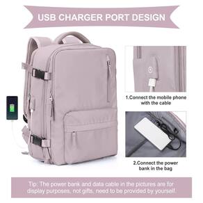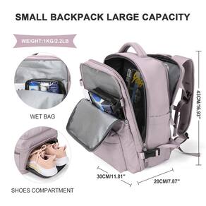 Mochila de viagem - Bolso seco e molhado - Porta de carregamento USB - Compartimento para sapatos - ?Mochila de mão aprovada por voo? Dimensões externas: 43 cm * 30 cm * 20 cm /16,93" * 11,81" * 7,87"; Peso: 1 kg / 1 kg. A mochila de viagem atende aos requisitos de bagagem de mão de muitas companhias aéreas. A mochila de ar pode ser colocada sob o assento do avião ou acima da cabeça, o que economiza suas cargas de bagagem de mão. Observação: verifique com sua companhia aérea as restrições de tamanho antes de sua viagem. - ?Design de bolso multifuncional?A mochila de grande capacidade tem 2 bolsos principais, 2 compartimentos para laptop, 1 compartimento para sapatos, 1 bolso frontal, 1 bolso lateral, 1 bolso traseiro antirroubo e outro bolso pequeno para suas várias necessidades de uso diário em qualquer lugar para viagens casuais de fim de semana. - ?Design de porta de carregamento USB?A mochila para laptop com uma porta de carregamento USB facilita carregar seu telefone ou outros dispositivos enquanto viaja - Compartimento para sapatos e bolso úmido: esta mochila de mão tem um compartimento separado para sapatos que pode transportar melhor seus sapatos e não cheira mal com orifícios de ventilação. A bolsa úmida é feita de material impermeável de alta densidade, que pode ajudá-lo a separar coisas secas das molhadas e, se você tiver roupas ou toalhas molhadas, pode colocá-las na bolsa úmida. - ?Alças de ombro respiráveis e almofada traseira?Esta mochila feminina é capaz de se ajustar às suas costas e ombros com uma esponja macia e respirável para uma longa viagem. O design de fivela fixa no peito facilita o ajuste e a fixação da mochila para aliviar a pressão nos ombros e nas costas.