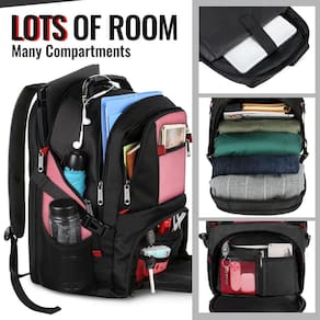 YOREPEK Mochila de viagem, mochila extra grande para laptop de 50 L para homens e mulheres, resistente à água, bolsa de trabalho de negócios aprovada por companhias aéreas, com porta de carregamento - Grande capacidade e organização: a mochila grande possui 3 compartimentos espaçosos, um compartimento separado para laptop de 17 polegadas e um compartimento principal espaçoso para necessidades diárias, como roupas, cadernos, etc. O compartimento frontal tem muitos bolsos pequenos, bem como bolsos para caneta e um design de chaveiro para manter suas coisas organizadas. A mochila grande masculina tem mais de 10 bolsos, incluindo 2 bolsos laterais de malha para garrafas de água e guarda-chuvas. Tamanho: 44,5 x 33 x 21,6 cm - Aprovação TSA e multiuso: nos postos de controle, a mochila de viagem grande pode ser desdobrada livremente de 90 a 180 graus, permitindo que você passe rapidamente pela segurança do aeroporto e mantenha as coisas organizadas, projetada exclusivamente para viagens de avião. Uma alça de bagagem permite que a mochila de viagem caiba na mala, ótima para viagens de avião internacionais e passeios de um dia - Prática e conveniente: a porta USB externa com cabo de carregamento integrado carrega convenientemente seu telefone e outros dispositivos eletrônicos (forneça seu próprio carregador portátil). Um orifício na mochila de viagem para laptop é utilizado na parte externa do fone de ouvido, que pode ser utilizado convenientemente. Além disso, a mochila grande para laptop tem uma alça resistente com um cabo de aço na parte superior para facilitar a portabilidade. As tiras de compressão laterais mantêm o pacote exclusivo em qualquer tamanho que você precisar - Material confiável: feita de tecido de poliéster resistente à água e forro de nylon de alta densidade para melhor resistência a rasgos, a mochila resistente com zíperes de metal garante o uso diário de longa duração. Serve bem como uma mochila profissional de trabalho de escritório e uma grande mochila de carregamento USB. Um presente ideal para festivais - Confortável: com um design confortável acolchoado nas costas e almofadas ventiladas de vários painéis grossos e macios, a mochila grande dá a você um ótimo suporte para as costas. Alças de ombro respiráveis e ajustáveis aliviam a pressão dos ombros para reduzir o desconforto em mochilas longas. A mochila para homens e mulheres será uma boa parceira para viagens. Este item não é destinado a ser utilizado por crianças menores de 12 anos