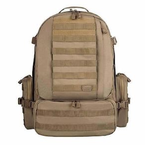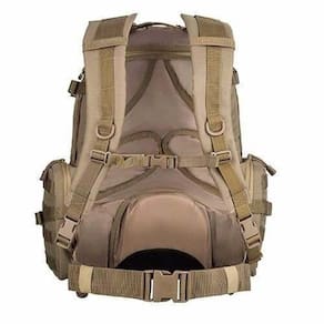 a mochila defender é de maior porte e foi desenvolvida para ser utilizado em situações extremas e de sobrevivência. Apesar da robustez e grande capacidade de carga, proporciona conforto ao usuário em função do seu painel traseiro acolchoado e dos cintos de fixação na cintura e tórax. Informações técnicas: