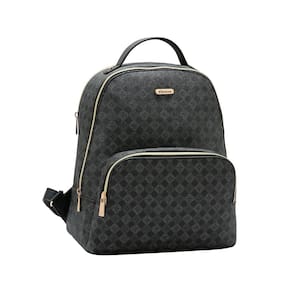 Mochila feminina com estampa exclusiva de elementos gráficos em padrão geométrico, trazendo um visual moderno e elegante para o dia a dia.