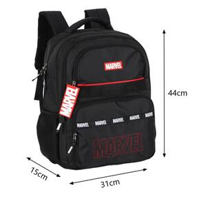 Mochila de Costas Luxcel Marvel A Mochila de Costas da Marvel Luxcel é perfeita para transportar material escolar ou para uso diário. Com um design moderno e funcional, essa mochila possui amplo espaço interno, permitindo que você carregue tudo o que precisa de forma organizada e prática. Essa mochila possui um compartimento principal grande, com espaço de sobra para seus livros, cadernos e demais itens, além disso, conta com dois bolsos laterais para garrafa, ou outros objetos pequenos. As alças acolchoadas e ajustáveis proporcionam mais conforto no transporte, enquanto o formato ergonômico distribui melhor o peso nas costas. É ideal para escola, passeios e outras atividades do dia a dia. Características da Mochila Escolar: - 1 Bolso Principal com bastante espaço - 3 Bolsos Frontais todos com fechamento - 2 Bolsos laterais para squeeze - Alça de mão reforçada na parte superior - Alças de costas acolchoadas e ajustáveis - Fechamento em Zíper personalizado - Material: 100% Poliéster - Forro: 100% Poliéster Dimensões Aproximadas: - Altura: 44 cm - Largura: 31 cm - Profundidade: 15 cm