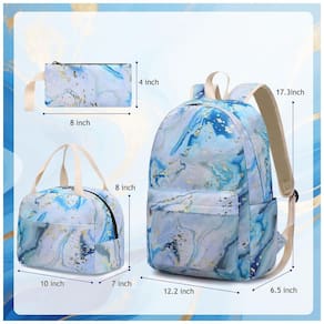 Conjunto escolar Bluboon 3 em 1 composto por mochila, lancheira térmica e estojo, indicado para meninas e adolescentes em rotina escolar, viagens e uso diário. A mochila possui compartimento interno com acolchoamento para notebook de até 35,5 cm, espaço para fichários, cadernos, livros e materiais escolares, além de bolso frontal com zíper e bolsos laterais para garrafas.