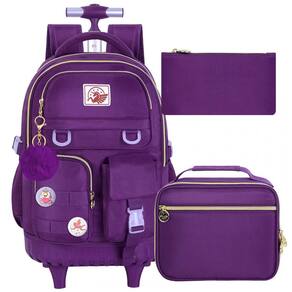 Modelo: Mochila escolar com rodinhas 3 peças roxa