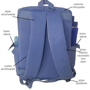 Compartimentos Organizadores: Esta mochila inclui vários compartimentos e bolsos para ajudar os estudantes a manterem seus pertences organizados. São eles: bolsos laterais para garrafinhas, bolso traseiro com ziper e bolsos frontais com zíper.