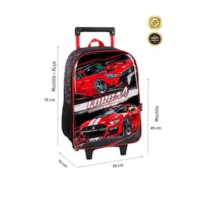 Design: Inspirado nos carros do Força 4, cores vibrantes e detalhes incríveis. Funcionalidade: Rodinhas resistentes, alças ajustáveis, compartimentos espaçosos e bolso frontal. Material: Resistente à água e fácil de limpar.