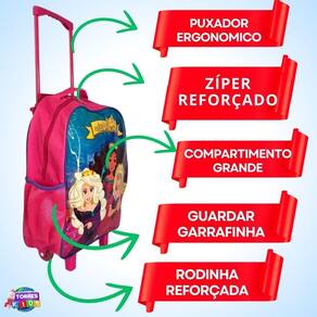 CONTÉM:01 Kit Mochila de Rodinha Princesas com 3 Peças Rosa/Roxo.