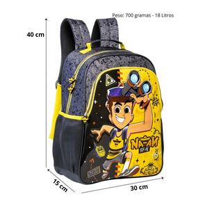 Mochila 16 natan por aí x, cada ida à escola vira uma missão cheia de descobertas inspirada no espírito aventureiro do natan, essa mochila combina funcionalidade, resistência e muito estilo para os pequenos exploradores que adoram aprender e se divertir ao mesmo tempo frente em pvc com brilho e relevo, estampando o natan com seu binóculo, pronto para mais uma aventura. Estampa full print exclusiva nas laterais e alças, repleta de ícones que remetem a mapas, coordenadas e missões secretas. Mochila em poliéster, dois compartimentos espaçosos com zíper, ideais para separar livros, cadernos e materiais escolares. Alças de ombro acolchoadas e ajustáveis, garantindo mais conforto no transporte. Material resistente e de alta qualidade, pensado para acompanhar os pequenos em todas as suas jornadas. Venha fazer parte da colmeia. - estampa exclusiva - zíper de alta qualidade - puxadores emborrachados personalizados - zíper duas cores Dimensões: - largura: 30cm - altura: 40cm - comprimento: 15cm Peso: 400gr Cuidados: - guarde em um local seco e arejado evitando locais úmidos. - evite colocar excesso de peso no produto para não forçar os zíperes e costuras. - proteja os objetos cortantes e/ou pontiagudos evitando o contato direto com o produto. - evitar altas temperaturas. - cores claras poderão manchar quando em contato com outros objetos ou roupas de cores pigmentadas.