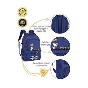 Confeccionada em Poliéster Alças de costas reguláveis e alça de mão Compartimentos espaçosos 2 bolsos laterais para garrafa Design exclusivo Fechamento em zíper Puxadores personalizados Medidas aproximadas: Altura: 45 cm Largura: 15 cm Comprimento: 30 cm CUIDADOS: - Guarde em um local seco e arejado evitando locais úmidos. - Evite colocar excesso de peso no produto para não forçar os zíperes e costuras. - Proteja os objetos cortantes e/ou pontiagudos evitando o contato direto com o produto. - Evitar altas temperaturas. - Cores claras poderão manchar quando em contato com outros objetos ou roupas de cores pigmentadas.