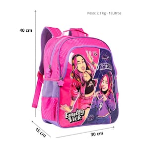 Mochila 16 emilly vick & katlen - estilo e personalidade que brilham na escola essa mochila é para quem ama brilhar com muita atitude a emilly vick e a katlen chegaram com tudo para deixar o look escolar ainda mais incrível. A frente da mochila traz uma arte supercolorida e cheia de personalidade das duas influenciadoras, com detalhes que fazem toda a diferença - como os puxadores de estrela e o efeito brilhoso na estampa frente em pvc com relevo e acabamento em glitter. Mochila em poliéster, alças de costas acolchoadas, ajustáveis e com estampa de estrelas, garantindo conforto durante o uso. Costas e base estruturadas, com acabamento reforçado para maior durabilidade e estabilidade. Bolsos laterais em mesh e poliéster, ótimo para armazenar garrafas, ou itens menores. Dois compartimentos com zíper, que facilitam a organização dos materiais escolares do dia a dia. - estampa exclusiva - zíper de alta qualidade - puxadores emborrachados personalizados - zíper duas cores Dimensões: - largura: 30cm - altura: 40cm - comprimento: 15cm Peso: 400gr Cuidados: - guarde em um local seco e arejado evitando locais úmidos. - evite colocar excesso de peso no produto para não forçar os zíperes e costuras. - proteja os objetos cortantes e/ou pontiagudos evitando o contato direto com o produto. - evitar altas temperaturas. - cores claras poderão manchar quando em contato com outros objetos ou roupas de cores pigmentadas.