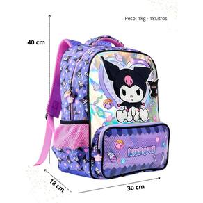 Mochila infantil kuromi 16 - inspirada na personagem kuromi, da sanrio, com visual divertido e cheio de atitude. Combinação de roxo, lilás, e rosa detalhes em rosa e branco. A frente é estampada, frente em pvc , com uma arte encantadora, detalhe especial: bolso frontal com mesh, que adiciona um toque lúdico e divertido ao visual. Os puxadores emborrachados personalizados garantem conforto e facilidade no uso diário. Os bolsos laterais em mesh oferecem espaço extra para garrafinhas ou pequenos objetos, enquanto o zíper tratorado reforça a durabilidade da peça. Combinando funcionalidade e personalidade, ela se destaca como uma ótima opção de presente para crianças que adoram personagens divertidos e modernos. - frente em pvc holográfico; - bolso frontal com mesh; - zíper tratorado de plástico; - puxadores emborrachados personalizados; - bolsos laterais em mesh; - material: poliester -acompanha chaveiro Dimensões: - largura: 30cm - altura: 40cm - comprimento: 15cm Peso: 630gr Cuidados: - guarde em um local seco e arejado evitando locais úmidos. - evite colocar excesso de peso no produto para não forçar os zíperes e costuras. - proteja os objetos cortantes e/ou pontiagudos evitando o contato direto com o produto. - evitar altas temperaturas. - cores claras poderão manchar quando em contato com outros objetos ou roupas de cores pigmentadas.