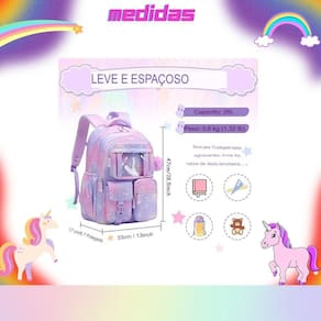 mochila escolar feminina, mochila moderna para meninas, mochila prática e confortável, mochila arco-íris, mochila com espaço para notebook, mochila funcional para crianças.
