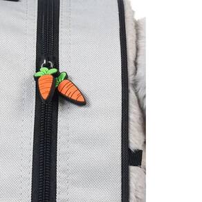 Zíper Temático Cenouras - Sistema de zíper especial com pingentes duplos de cenouras laranjas decorativas exclusivas